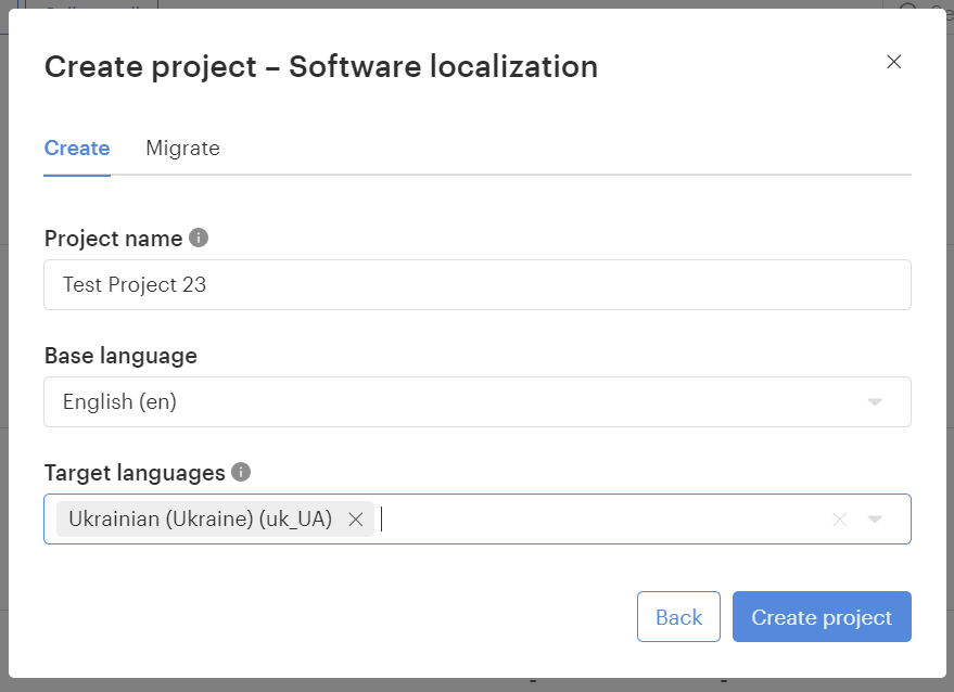1. Create a project in Lokalise: add files and languages and set a project type: